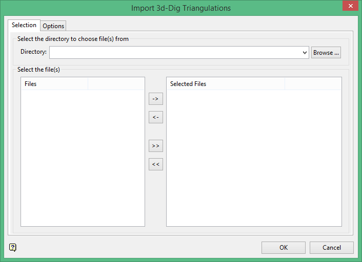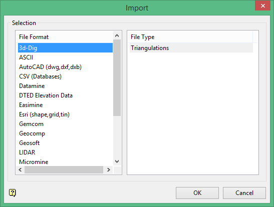Click OK to display the Import 3d-Dig Triangulations panel.