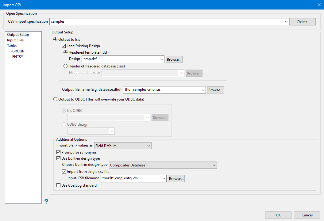 Use the Import CSV option to import information from one or multiple CSV files into an Isis or ODBC database. You can use create a new Isis database with this option even if you do not have a pre-existing design.