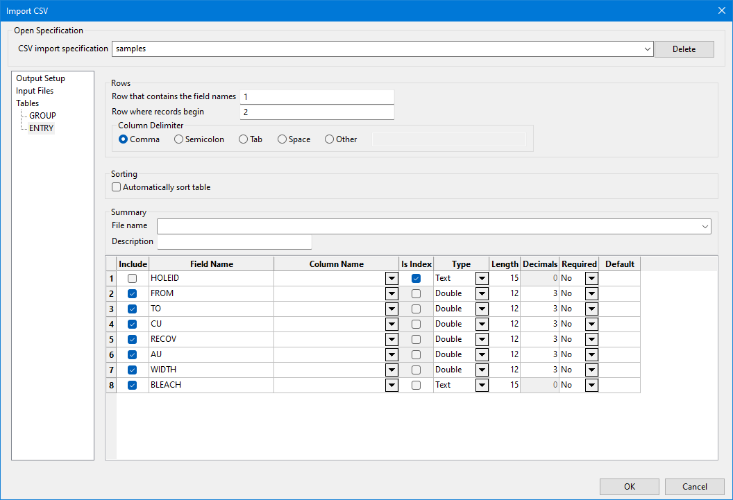 Enable Automatically sort table if the FROM and TO fields are not in order. When a drill CSV is imported with the FROM and TO depths out of order, the depths will be imported as is. Enabling this option will correct the order.