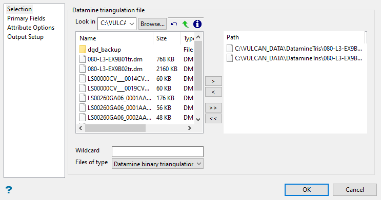 Selecting this checkbox will also allow you to name the resulting triangulation, as well as nominate the directory in which to store the file. If this checkbox is not selected, then the resulting triangulation file will inherit the name of the original Datamine file and will be placed in your current working directory.