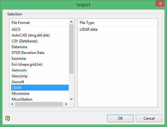 Use this option to import point data into a set of Vulcan layers. The data can be found in LAS files, CSV files, DEM files, or your own selection.