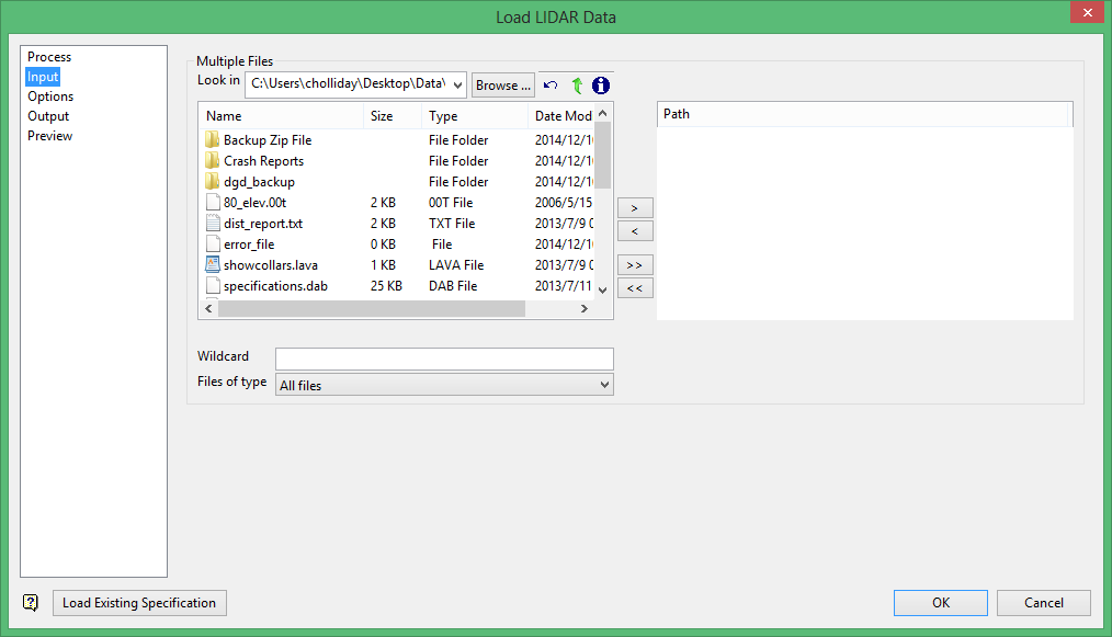 Browse for files using the Browse... button, or use the interface showing the available grid files in the current working directory.