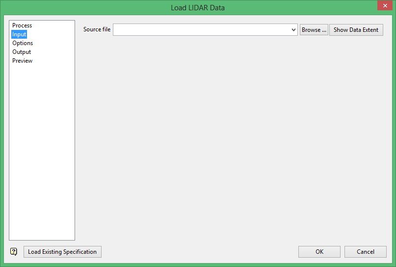 When the user selects a LAS file, it will validate whether the LAS file is a LIDAR LAS file, or a Log Ascii Standard file. If the user selected a Log Ascii Standard file, a popup dialog will appear stating that the selected file is a Log Ascii Standard file, and not a LIDAR file. If the user tries to proceed with the importing process, the same error dialog will appear, and prevent the importing process proceeding further, and the user will be returned to the main Process page.