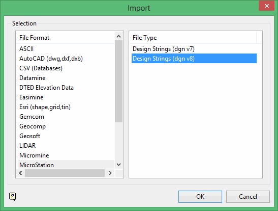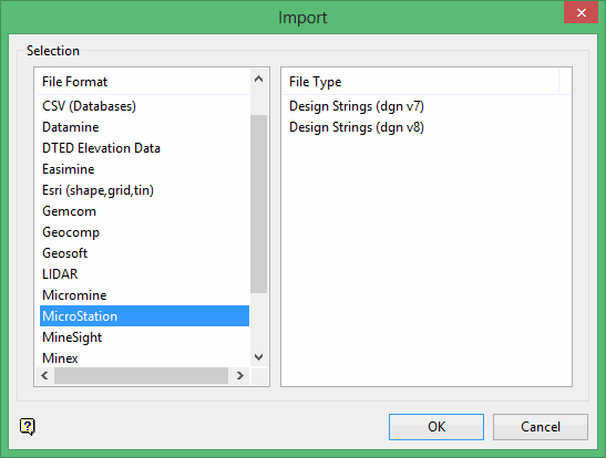 Note A triangulation or grid that has been exported from Vulcan to MicroStation and then imported back into Vulcan again, will be imported as string data.