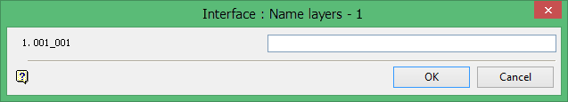 If the Layer key 1 and 2 fields have been entered (through the previous panel), then those layer names are displayed in this panel. If these fields have not been entered, all objects will be placed into one layer. The default layer name, which can be overwritten, is '001_001.'