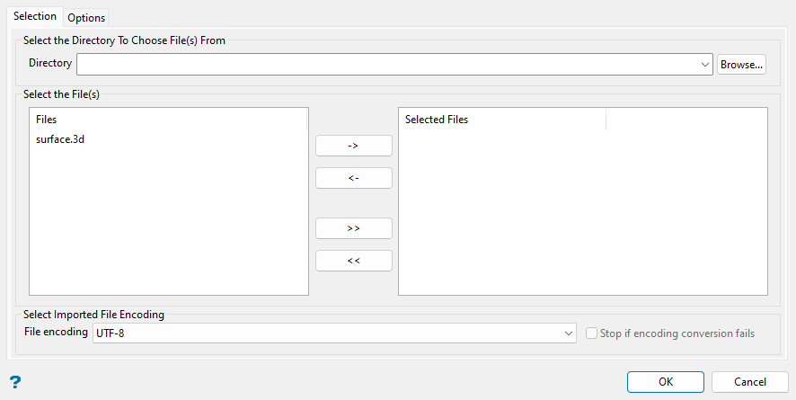 Select the MineSight files (.3d) that you want to import from the current working directory. Select from another folder within the current working directory by using the Directory drop-down list, or click Browse... to select a different location.