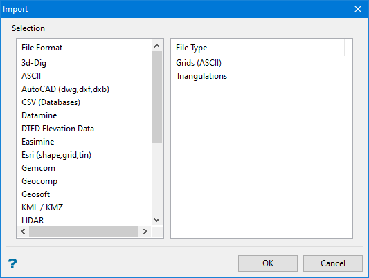 Use this panel to view information about any files you have imported. You can edit the name of the grid by highlighting the text in the Output Grid Names column.