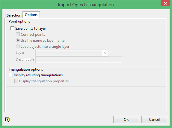 Click OK to display the Import Optech Triangulation panel.
