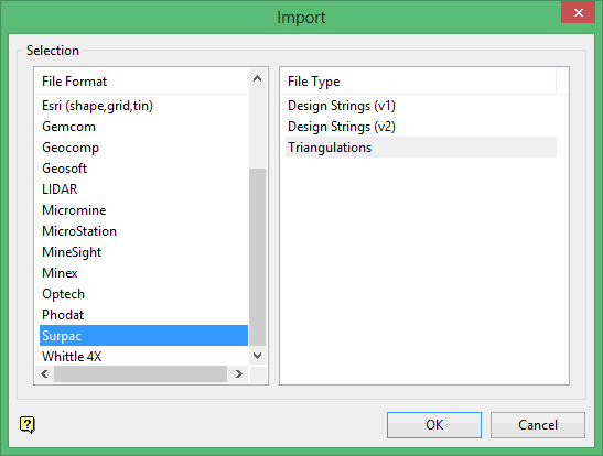 Click Surpac in the File Format column on the left.