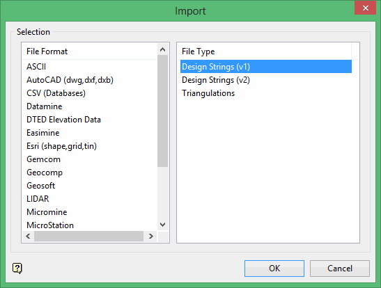 Note: Currently, Vulcan can import Surpac files exported as ASCII files only. Please note that import of *.str and *.dtm files are not supported. However, Surpac exports text and binary files. Vulcan does not import the binary files.