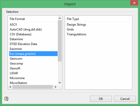 Esri AcrView (version 8 or later) must be installed on the current machine in order to import Esri triangulation data.