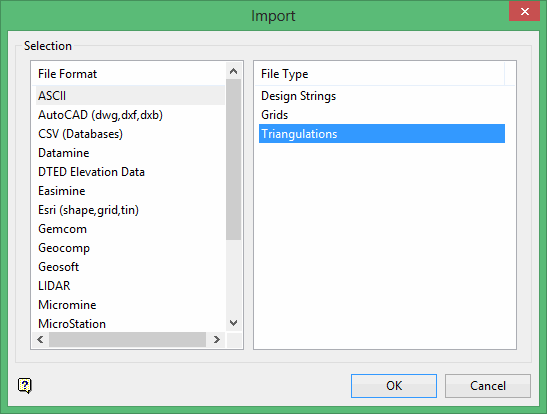 S elect Triangulations from the File Type field on the right side of the panel.