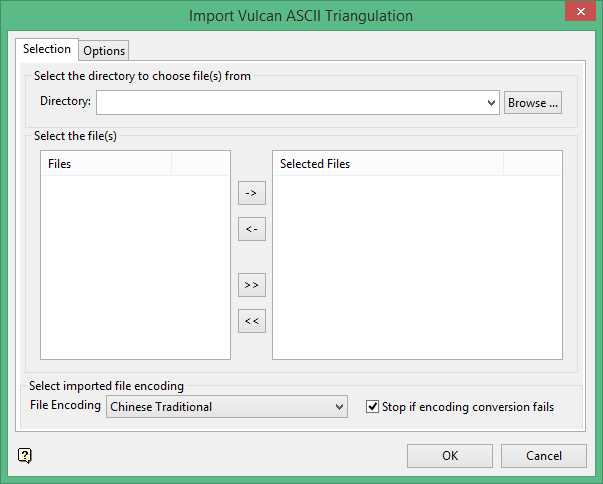 If an encoding other than UTF-8 is selected, the ASCII or CSV file will be converted to UTF-8 before imported to Vulcan.