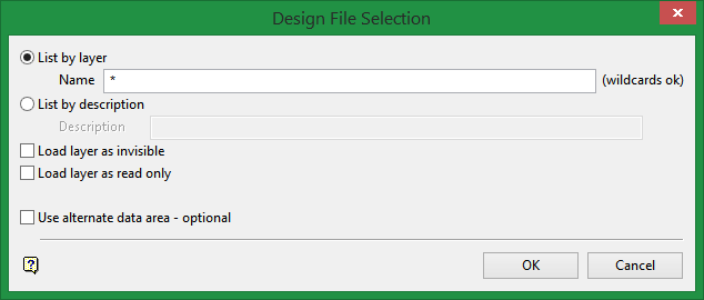Use the List option to list all available layers. The layers may be in a design database in your current working directory or in another data area. The layers can then be loaded by selecting them from the list.