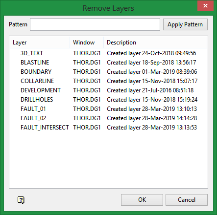 It is also possible to use the Pattern field, the Apply Pattern button and wildcards to highlight the layers that begin or end with certain characters.