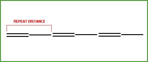 The repeat distance is the distance (in plotter units) of the line style before it will be repeated as illustrated below.