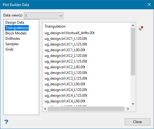 Displays a panel showing all data that is loaded into Plot Builder. Items can also be deleted using this panel. |