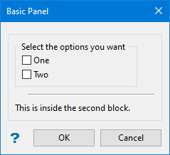 If you want to call on a function that is not part of the panel or wish to convey information to the user, then you would call it directly without referencing the panel object. For example, to create a message box you would write something like this: