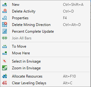 Alternatively, instead of using the icons in the ribbon, you can highlight the row(s) you wish to move, right-click with the mouse to bring up the context menu, then select To Move. Click the row you wish to move the activity to, right-click with the mouse to bring up the context menu, then click Move Here. The activity marked to move will be moved before the highlighted row.