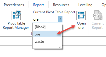 Figure 2: Current Pivot Table Report drop-down list.