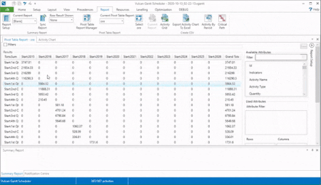 Use this to communicate schedule information by creating a pivot style report in which you can quickly generate various tables of information.