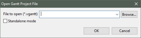 Note: The drop-down list is populated with (.vgantt) files found in the current working directory. Files stored in other locations can be accessed by using the Browse button.
