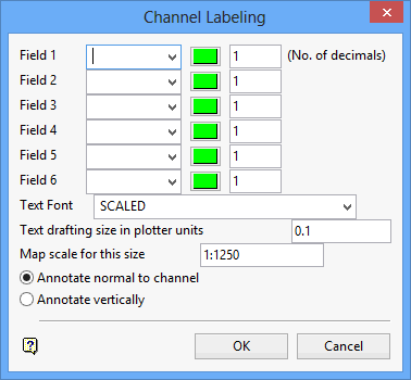 Up to six fields can be specified for plotting alongside the channel. These fields are spatially related, for example field 1 is at the end of the channel, field 6 is at the start of the channel.