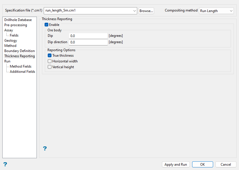 Note:  The thickness reporting options are not applicable to the Minable Interval compositing method.