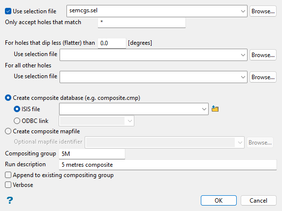 Create composite database: Select this option to dump the composites into a database. You will then need to select between Isis file or ODBC link to create the nominated database type. Use the drop-down lists or the Browse... button to select an existing file, or enter a name to create a new file.