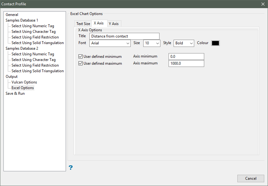 This section allows you to specify a title for X-axis within the resulting Microsoft Excel chart, as well as configure the font settings for the axis title text, i.e. the font type, font size, font style (normal, bold, italics, or bold italics) and font colour.