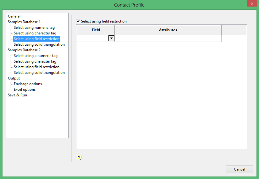 Select this checkbox to limit the samples to those with fields that match certain selection criteria. Select a Field from the drop-down list and enter applicable selection criteria in the Attributes column.