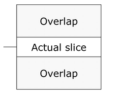Samples can be taken from the slice itself as well as from a defined neighbourhood or overlapping region. The following diagram demonstrates an overlap value.
