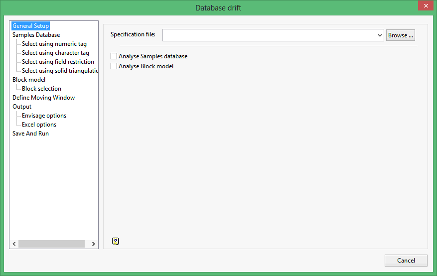 On the Geology menu, point to Sampling, and then click Database Drift Analyser to display the Database Drift interface.