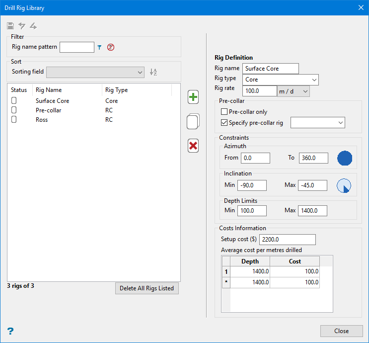 Use this option to create a list of drill rigs that will be used in the Drillhole Optimiser Editor.