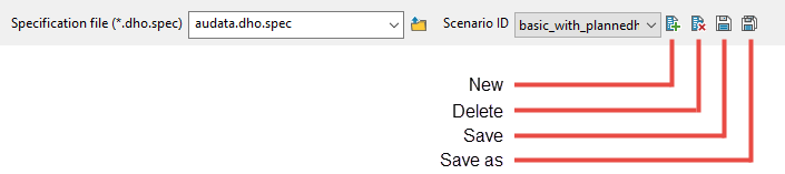 .dho.spec) extension. Click Browse to select a file from another location.TipYou can make changes to an existing DHO specification file, then click the Save As icon to save the edited version under a new name. This allows you to transfer all the parameter settings from the current panel settings to the new file without having to enter everything in again.