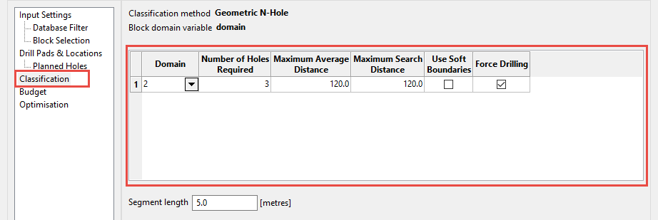 Enter the Segment length. This is the length for discretising new drillholes. This is necessary since all resource classification criteria are based on composite coordinates.
