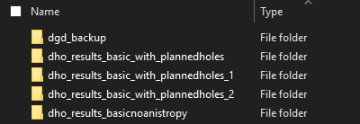 If the Planned Holes pane was used in the DHO, a file named dho_plannedholes.csvis created. This file contains the same fields as the _optimisedholesCSV file that is created for each budget, except the information pertains to the planned holes specified.