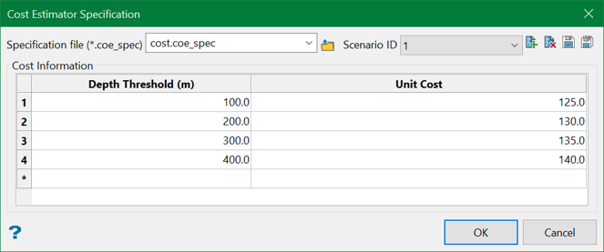 Note: The specification file (*.coe_spec) is used to store the parameters used in defining estimated drilling costs.