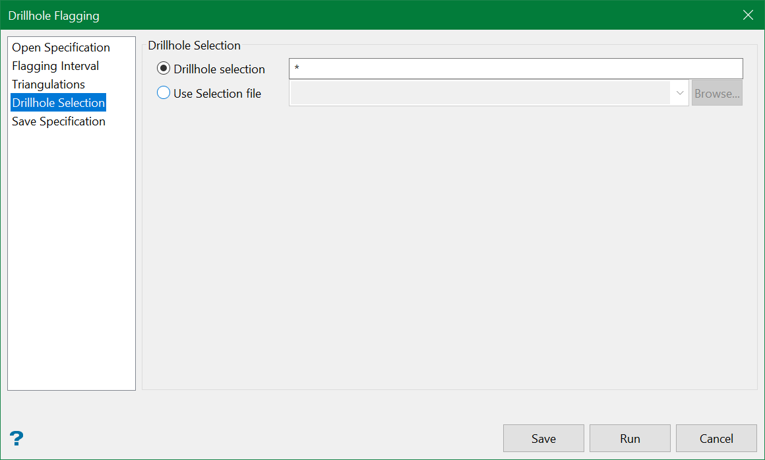 This section allows you to nominate the drillholes to process.