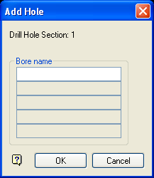 The Add Hole panel is redisplayed, allowing you to add another batch of drillholes. Select the Cancel button when you have finished adding drillholes to the drillhole section.