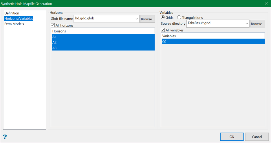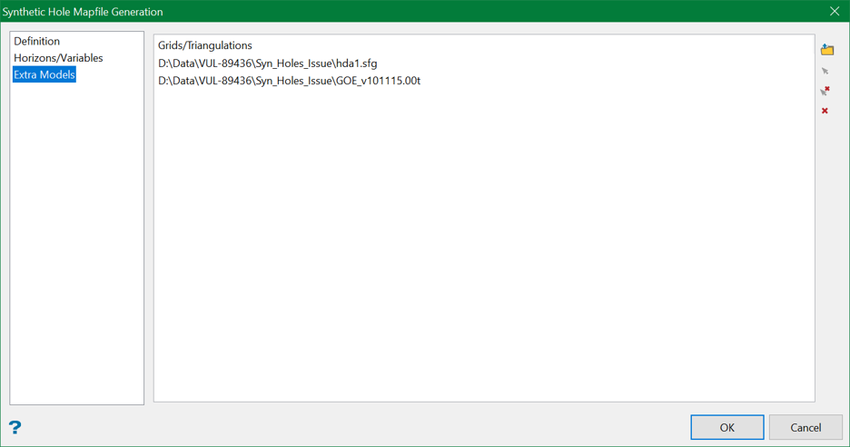 The Synthetic Hole Mapfile Generation panel is then displayed.