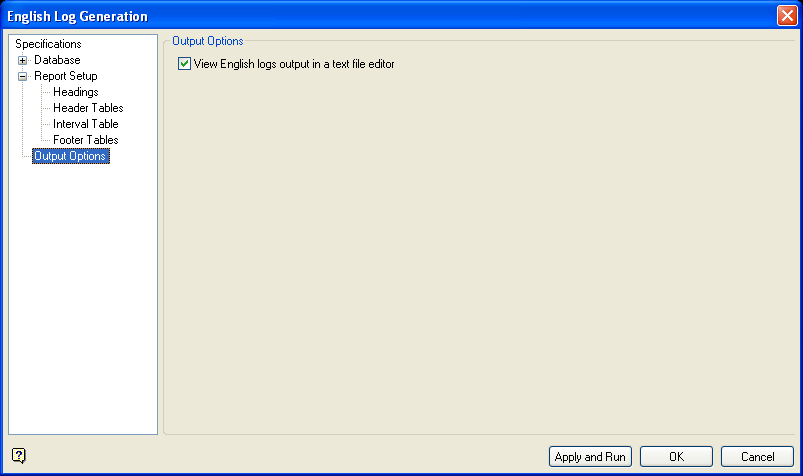 English Log Generation - Output Options