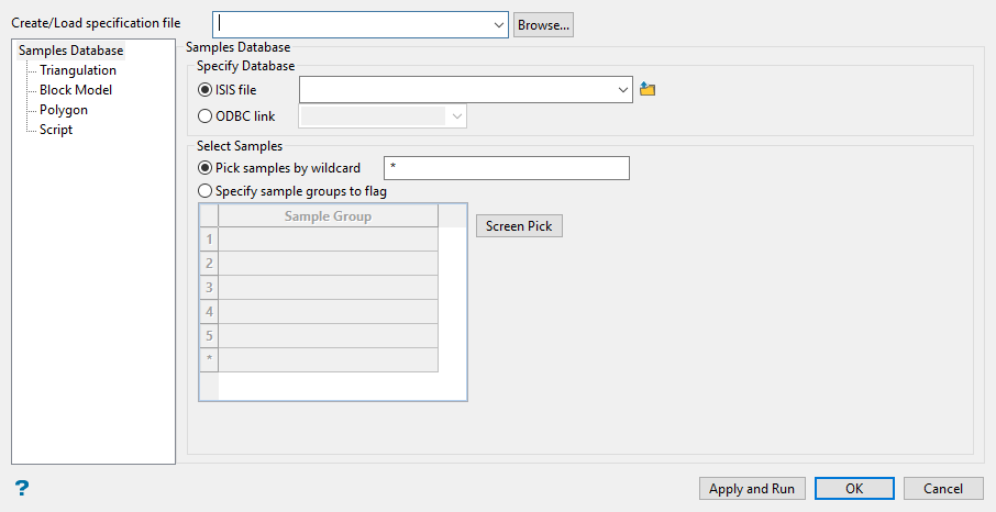 You can also select the samples groups by entering group names in the grid box with a combination of wildcard, or by manually selecting loaded samples directly from the screen using the Screen Pick option.
