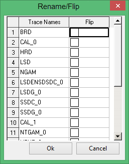 To rename a trace, click in the appropriate field before entering the new trace name. To flip a geophysical trace, check the corresponding Flip checkbox.