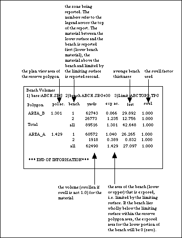 The calculated volumes are displayed in the Report Window of Vulcan. The units of measurement used are derived from the .dg1 file.
