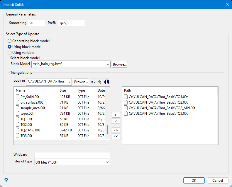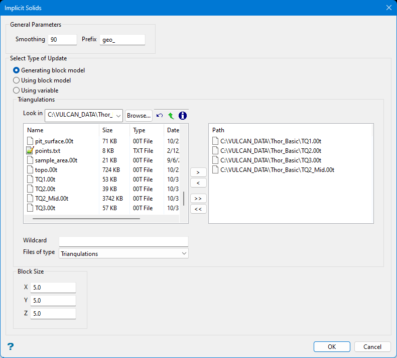 Click OK to complete the operation. A new triangulation is generated for each entered. An additional solid will be created that covers the entire block model.
