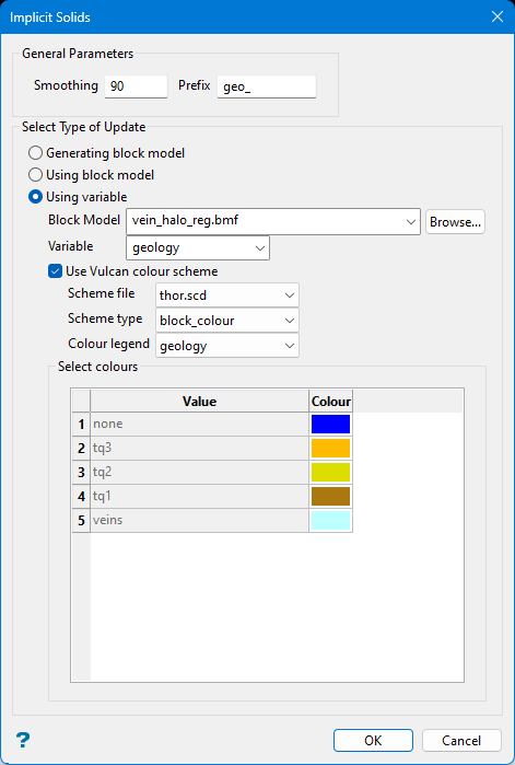 Use this option to create or update solids using block model variables or other triangulations.