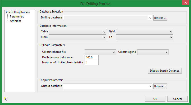 On the Geology menu, point to Implicit Modelling, and then click Pre Drilling Process to display the Pre Drilling Process panel.