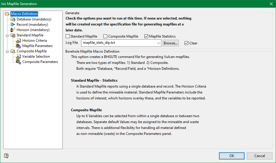 Select this checkbox to generate composite mapfiles from the current macro definition. A composite mapfile contains information for modelling the analytical or assay types of data.