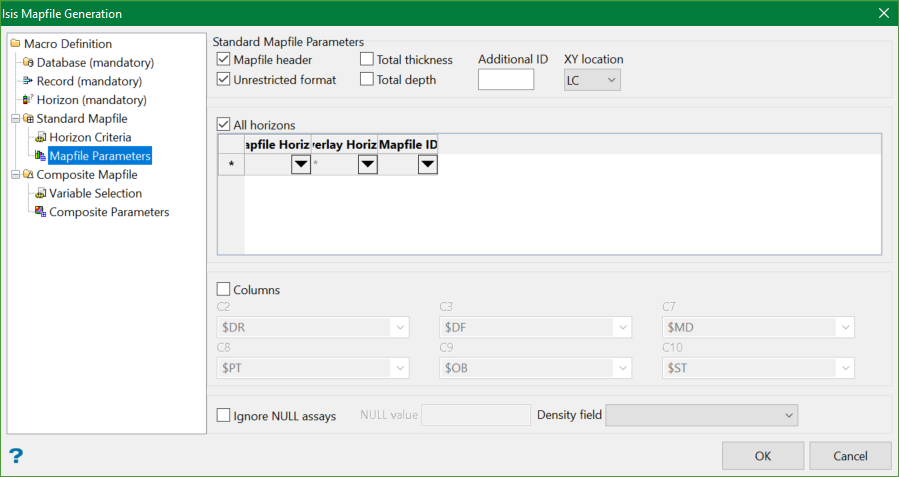 Select one or more horizons from the drop-down list to create individual mapfiles. This will enable you to use the Overlay Horizon and Mapfile ID fields.